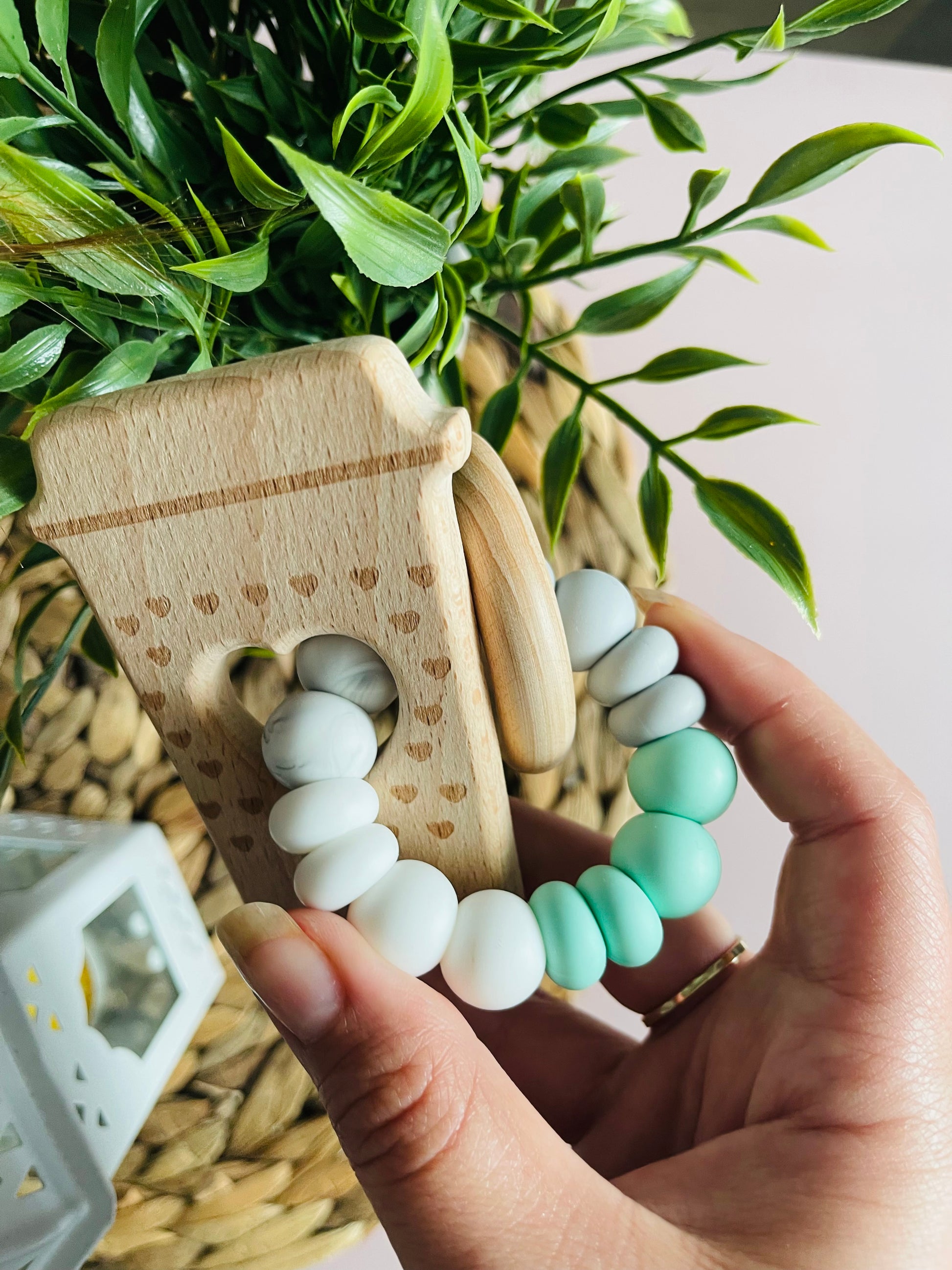 L'anneau de dentition saura soulager à merveille la poussée dentaire dont souffre votre mini. Les perles de silicone et les perles de bois naturel apaiseront les gencives douloureuses de votre petit être humain !